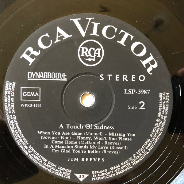 Jim Reeves – A Touch Of Sadness (LP, Album)