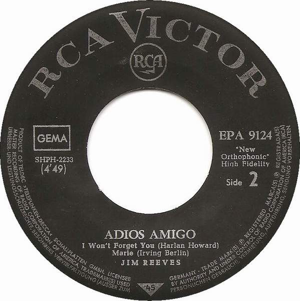 Jim Reeves – Adios Amigo (7″, EP)