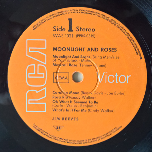 Jim Reeves – Moonlight And Roses (LP, Album, RE)