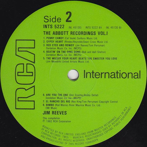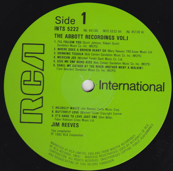 Jim Reeves – The Abbott Recordings Volume 1 (LP, Comp, Mono)