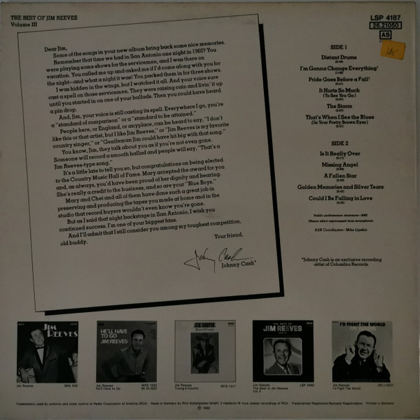 Jim Reeves – The Best Of Jim Reeves Volume III (LP, Comp, RE)