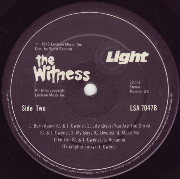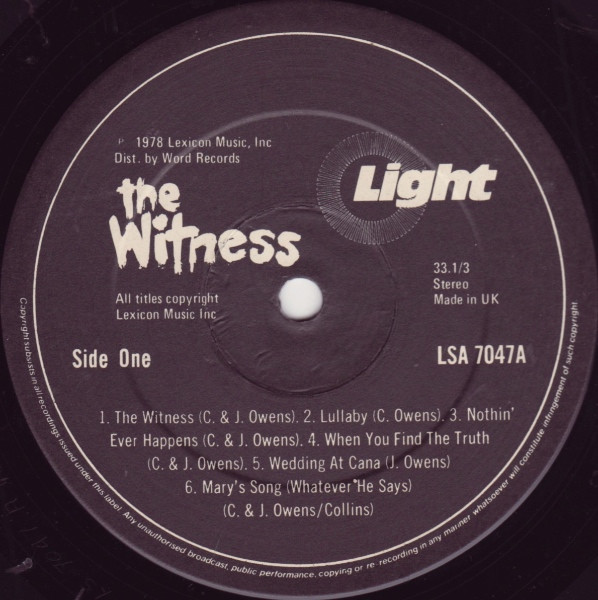 Jimmy & Carol Owens – The Witness (2xLP, Album)