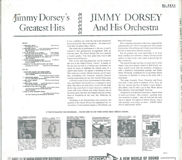 Jimmy Dorsey And His Orchestra – Jimmy Dorsey’s Greatest Hits (LP, Comp, Mono)