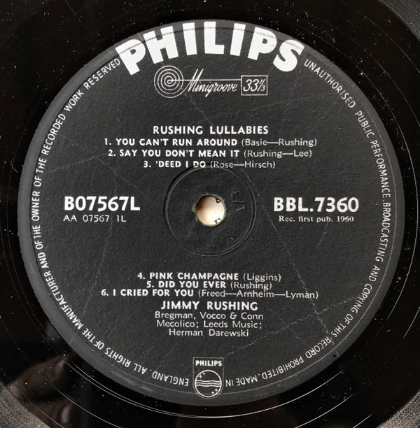 Jimmy Rushing – Rushing Lullabies (LP, Album)
