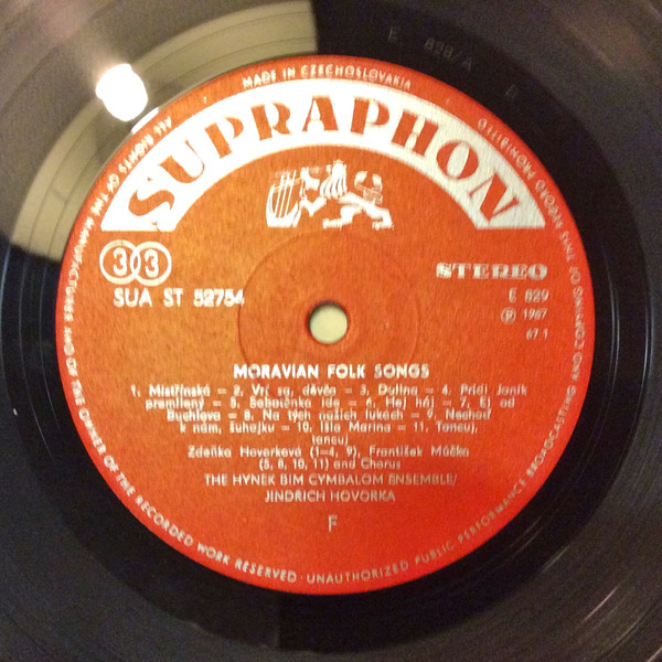 Jindřich Hovorka & Cimbálová Muzika Hynka Bíma – Moravian Folk Songs (LP)