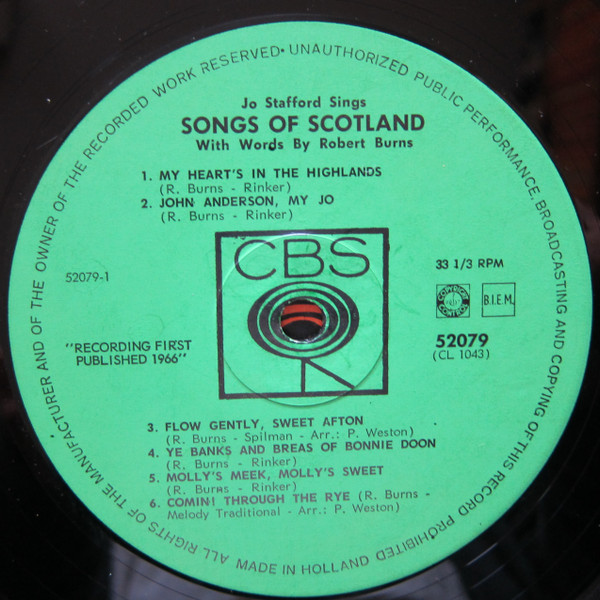 Jo Stafford – Jo Stafford Sings Songs Of Scotland (LP, Album, Mono, RE)