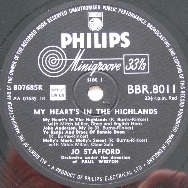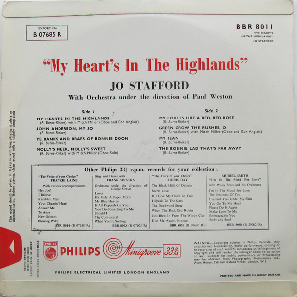 Jo Stafford – My Heart’s In The Highlands (10″, Mono)