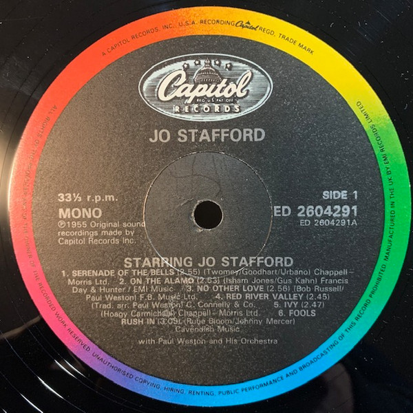 Jo Stafford With Paul Weston And His Orchestra – Starring Jo Stafford (LP, Album, Mono, RE)