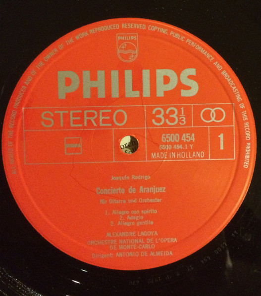 Joaquín Rodrigo, Alexandre Lagoya, Orchestre National De L’Opéra De Monte-Carlo, Antonio De Almeida – Concierto De Aranjuez – Fantasía Para Un Gentilhombre (LP, Album)