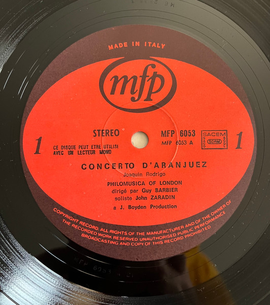 Joaquin Rodrigo*, S.L. Weiss*, G. Frescobaldi*, A. Lauro*, I. Albeniz*, J. Malats* – John Zaradin – Concerto D’Aranjuez (LP, Album, Mono)