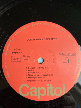 Joe South – Joe South Greatest (LP, Comp, RE)