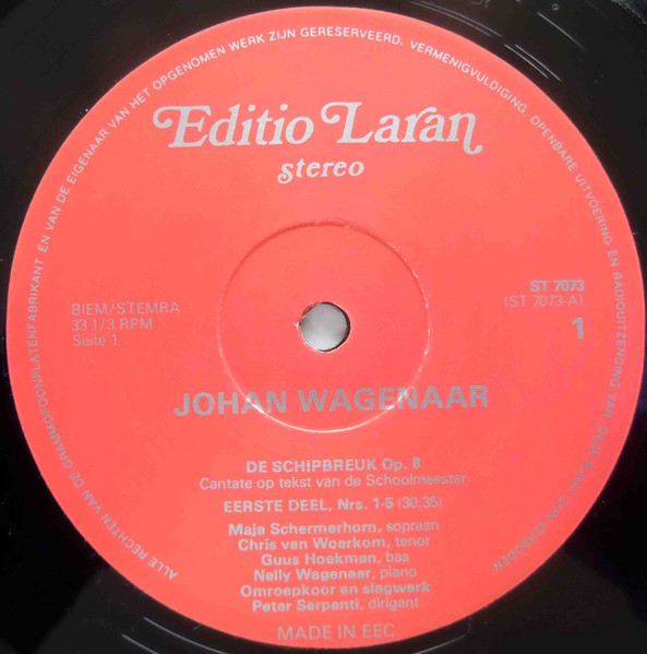 Johan Wagenaar – De Schipbreuk / The Shipwreck – Humoristische Cantate Op Tekst Van De Schoolmeester (LP, Album)