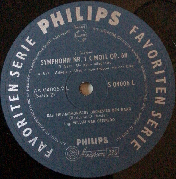 Johannes Brahms, The Hague Philharmonic, Willem Van Otterloo – 1. Symphonie C-Moll (LP)