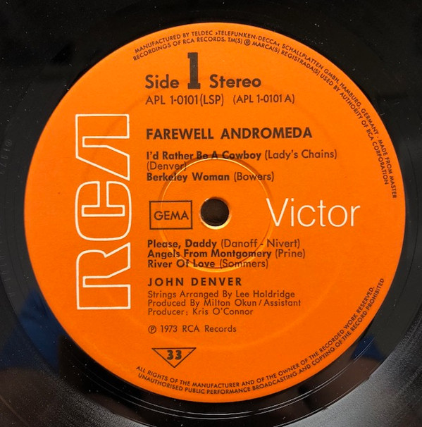 John Denver – Farewell Andromeda (LP, Album, Gat)
