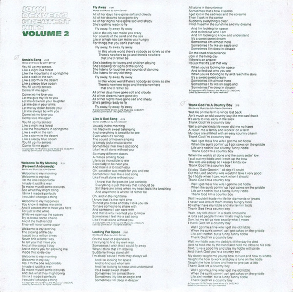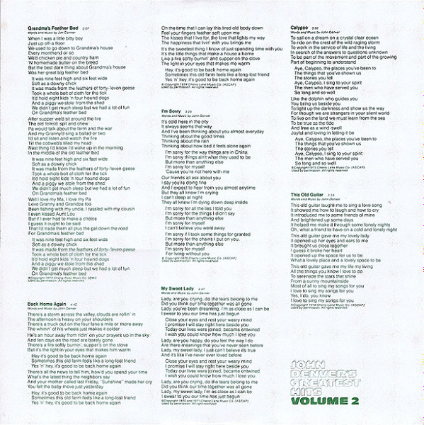 John Denver – Greatest Hits Volume Two (LP, Comp)
