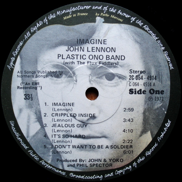 John Lennon & The Plastic Ono Band With The Flux Fiddlers – Imagine (LP, Album, RE)