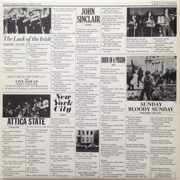 B1. John Lennon & Yoko Ono, The Plastic Ono Band, Elephants Memory, Invisible Strings – Sunday Bloody Sunday
