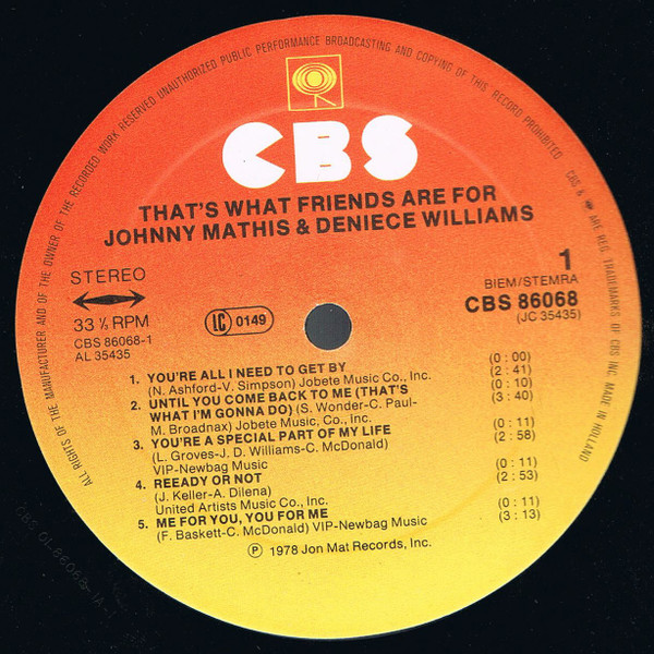 Johnny Mathis & Deniece Williams – That’s What Friends Are For (LP, Album)