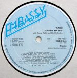 Johnny Mathis With Percy Faith & His Orchestra – Warm (LP, Album, RE)