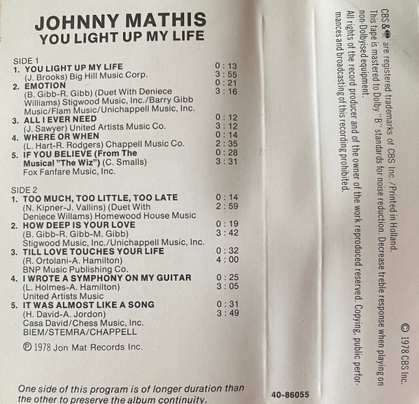 Johnny Mathis – You Light Up My Life (Cass, Album)