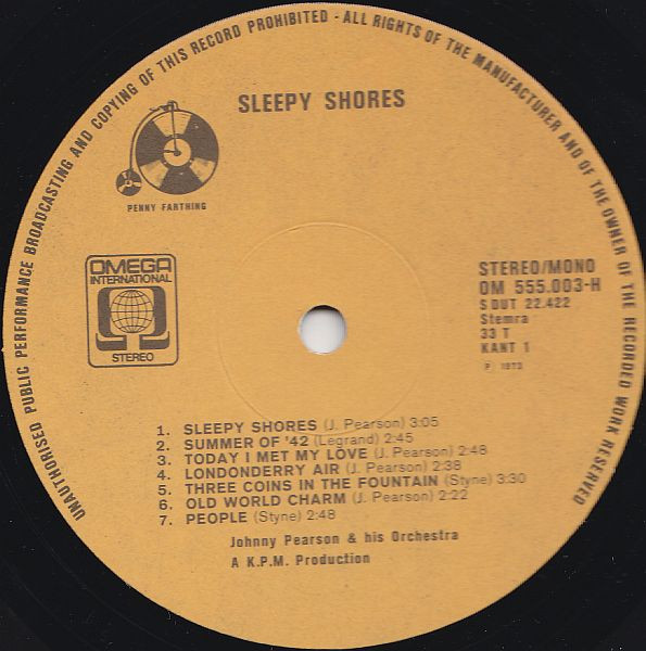 Johnny Pearson And His Orchestra* – Sleepy Shores (LP, Album, Yel)