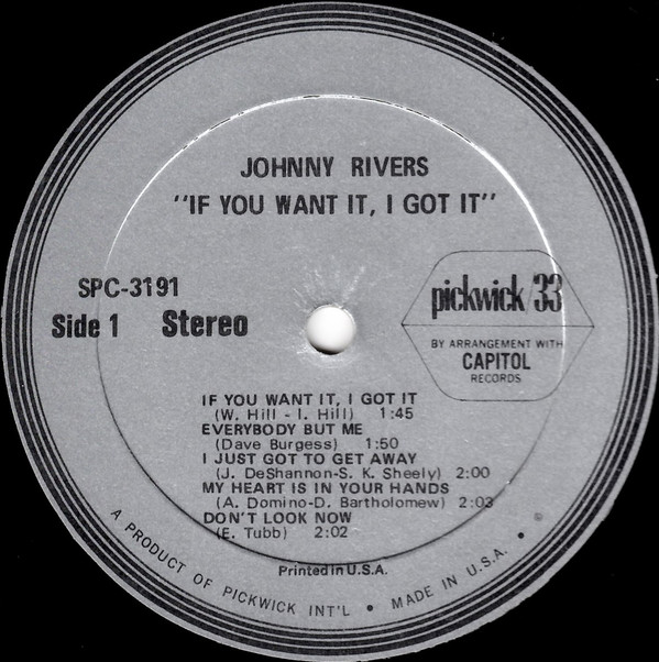 Johnny Rivers – If You Want It, I Got It (LP, Album, RE)