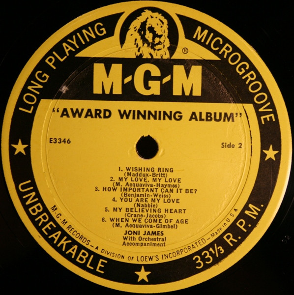 Joni James – Award Winning Album (LP, Album, Comp, Mono)