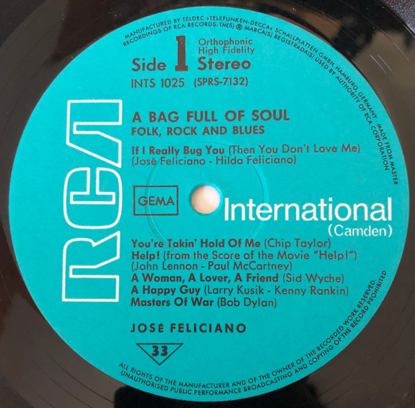 José Feliciano – A Bag Full Of Soul (LP, Album, RE)