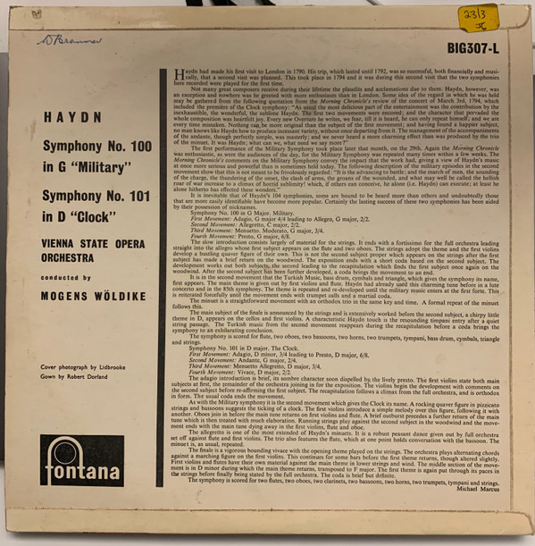 Joseph Haydn, Orchester Der Wiener Staatsoper, Mogens Wöldike – Symphony No 100 In G Military, Symphony No 101 In D Clock (LP, Mono)