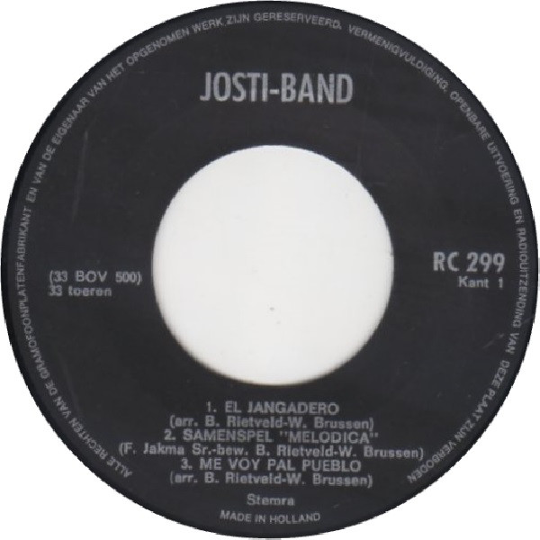 Josti-Band o.l.v. Wim Brussen, Ben Rietveld, C. Stouten~Pieterse – El Jangadero (7″, EP)