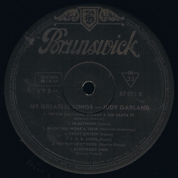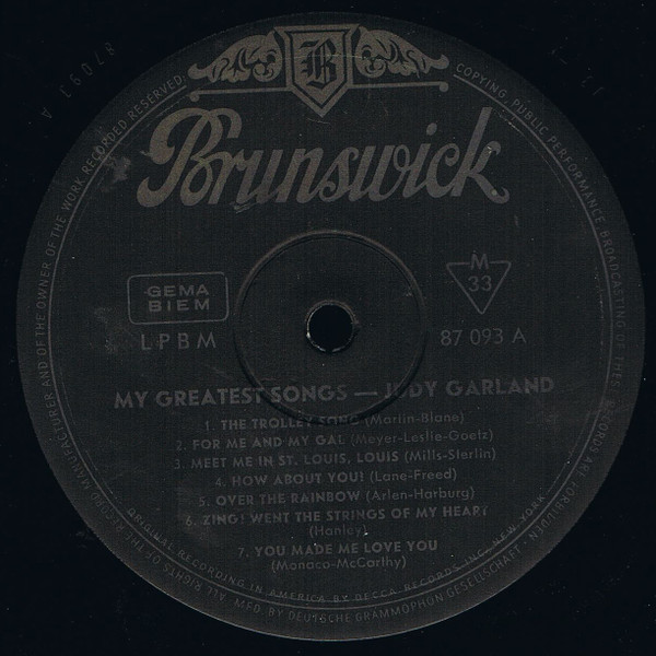 Judy Garland – My Greatest Songs (LP, Comp)