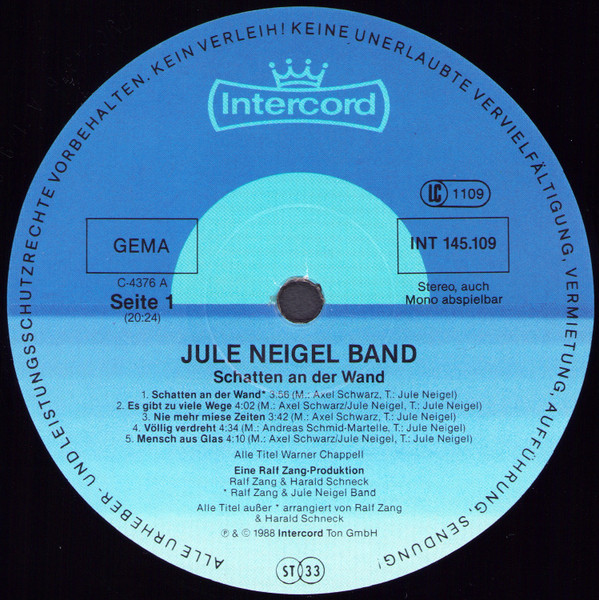Jule Neigel Band – Schatten An Der Wand (LP, Album)