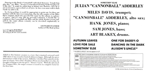 Julian “Cannonball” Adderley* – Somethin’ Else (CD, Album, RE)