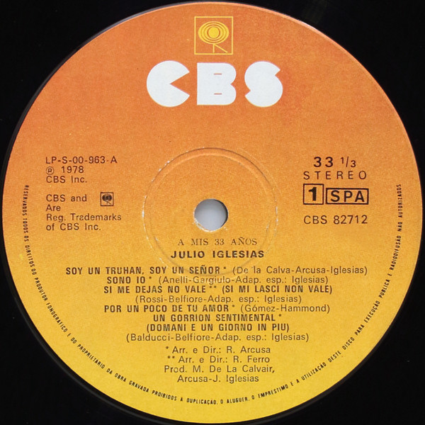 Julio Iglesias – A Mis 33 Años (LP, Album, Gat)