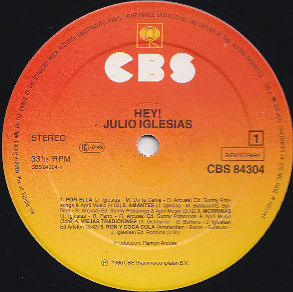 Julio Iglesias – Hey! (LP, Album, Gat)