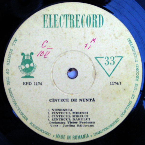 Justina Băluțeanu – Cîntece De Nuntă (10″, Album, Mono, RE)