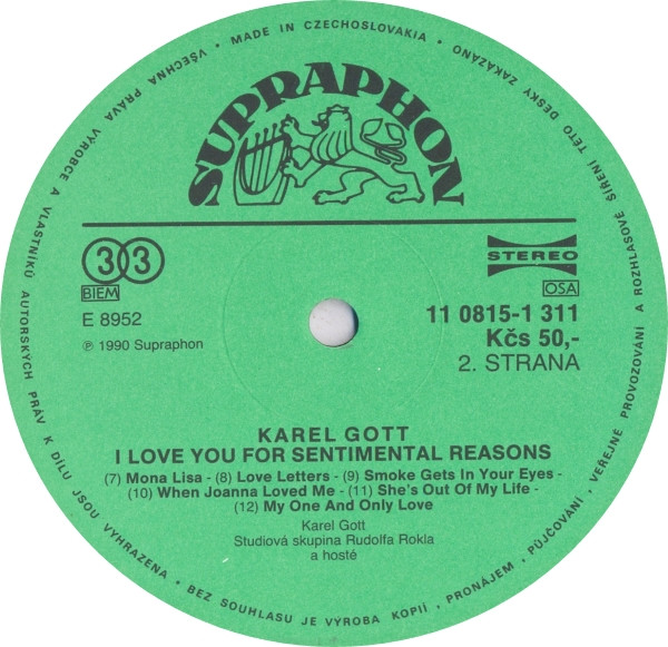 Karel Gott – I Love You For Sentimental Reasons (LP, Album)