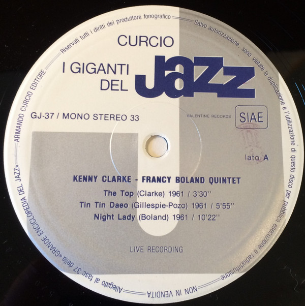 Kenny Clarke / Joe Harris (3) / Sahib Shihab / Francy Boland / Kenny Clarke Quintet – I Giganti Del Jazz Vol. 37 (LP, Mono)