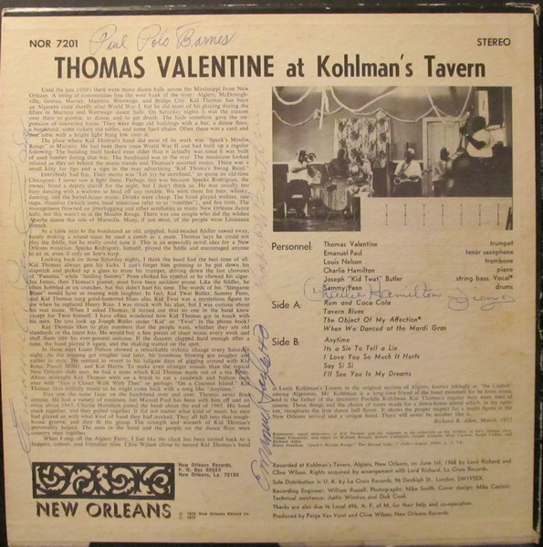 Kid Thomas Valentine – Thomas Valentine At Kohlman’s Tavern (LP, Album)