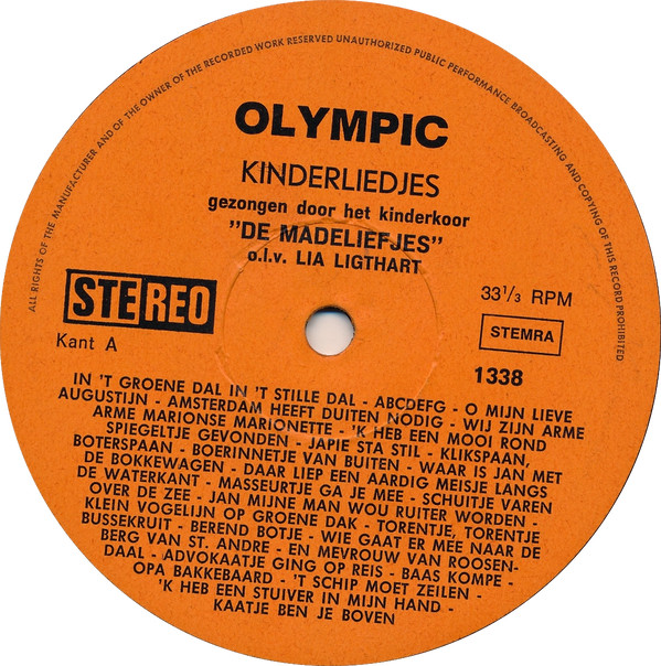Kinderkoor “De Madeliefjes” o.l.v. Lia Ligthart – Kinderliedjes (LP, Album)