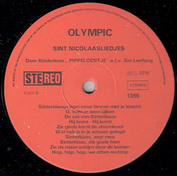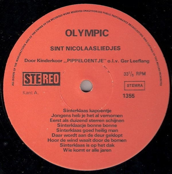 Kinderkoor Pippeloentje o.l.v. Ger Leeflang – Sint Nicolaasliedjes (LP, Album)