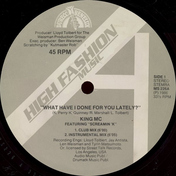 King MC Featuring Screamin’ K – What Have I Done For You Lately? (Rapp) (12″)