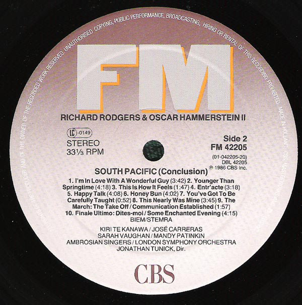 Kiri Te Kanawa / José Carreras / Sarah Vaughan / Mandy Patinkin – South Pacific (LP, GA)