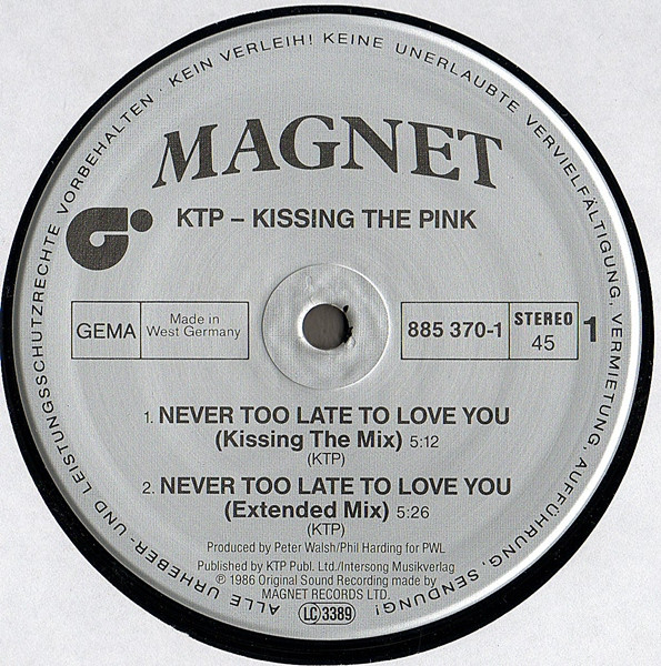 Kissing The Pink – Never Too Late To Love You (12″, Maxi)