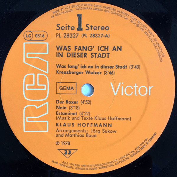 Klaus Hoffmann – Was Fang Ich An In Dieser Stadt? (LP, Album)