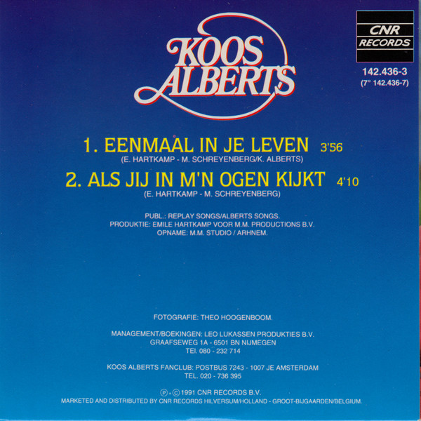 Koos Alberts – Eenmaal In Je Leven (CD, Single)