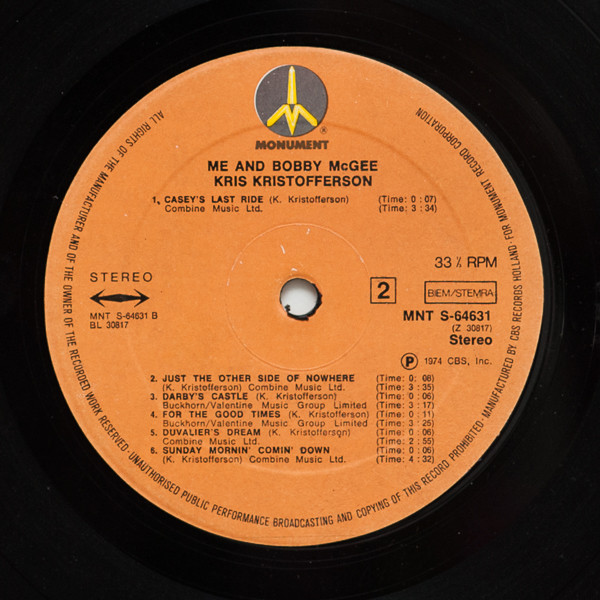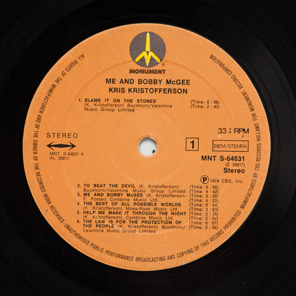 Kris Kristofferson – Me And Bobby McGee (LP, Album, RE)