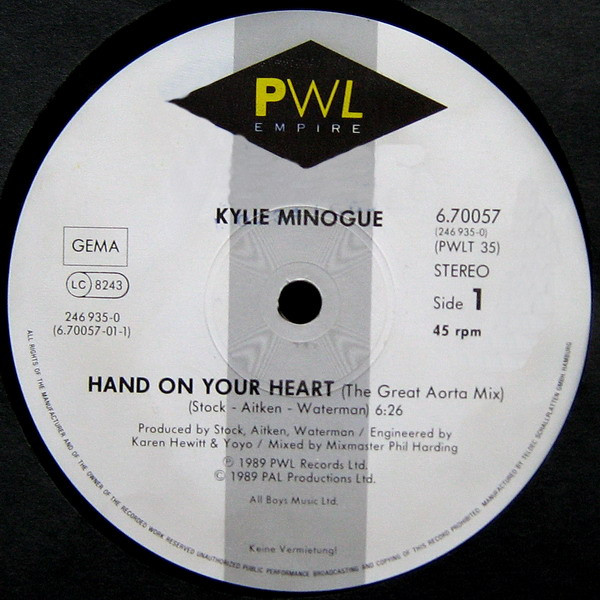 Kylie Minogue – Hand On Your Heart (12″, Maxi)