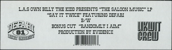 L.A.’s Own Billy The Kidd featuring Defari – Say It Twice / Randomly I Aim (12″)
