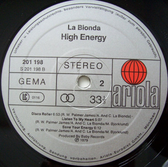 La Bionda – High Energy (LP, Album, Son)